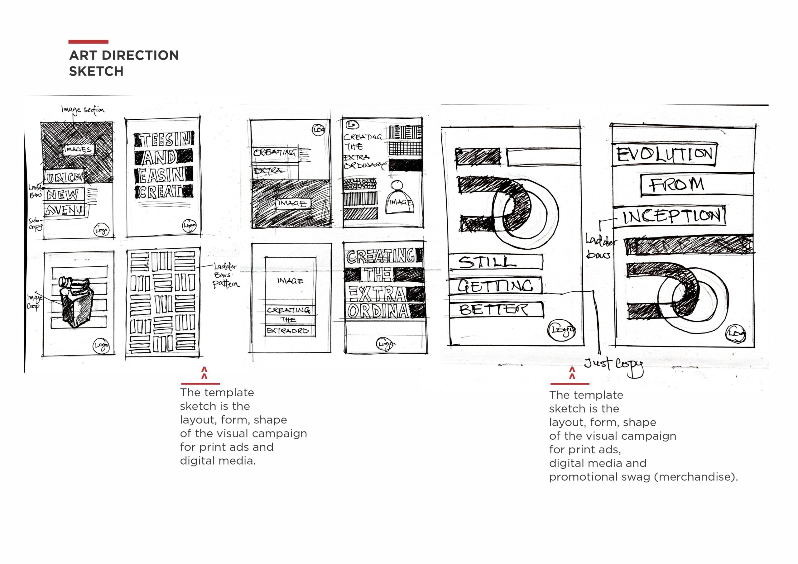 The accompanying artwork includes black and illustrations of alumni, 3D works, and ladder bars, which are part of the reworking of the identity logo to create a geometric template. The event’s bold and expressive typography establishes a distinct look as it is applied across posters, billboards, print ads, bus shelter ads, and digital advertising, promotional swag.