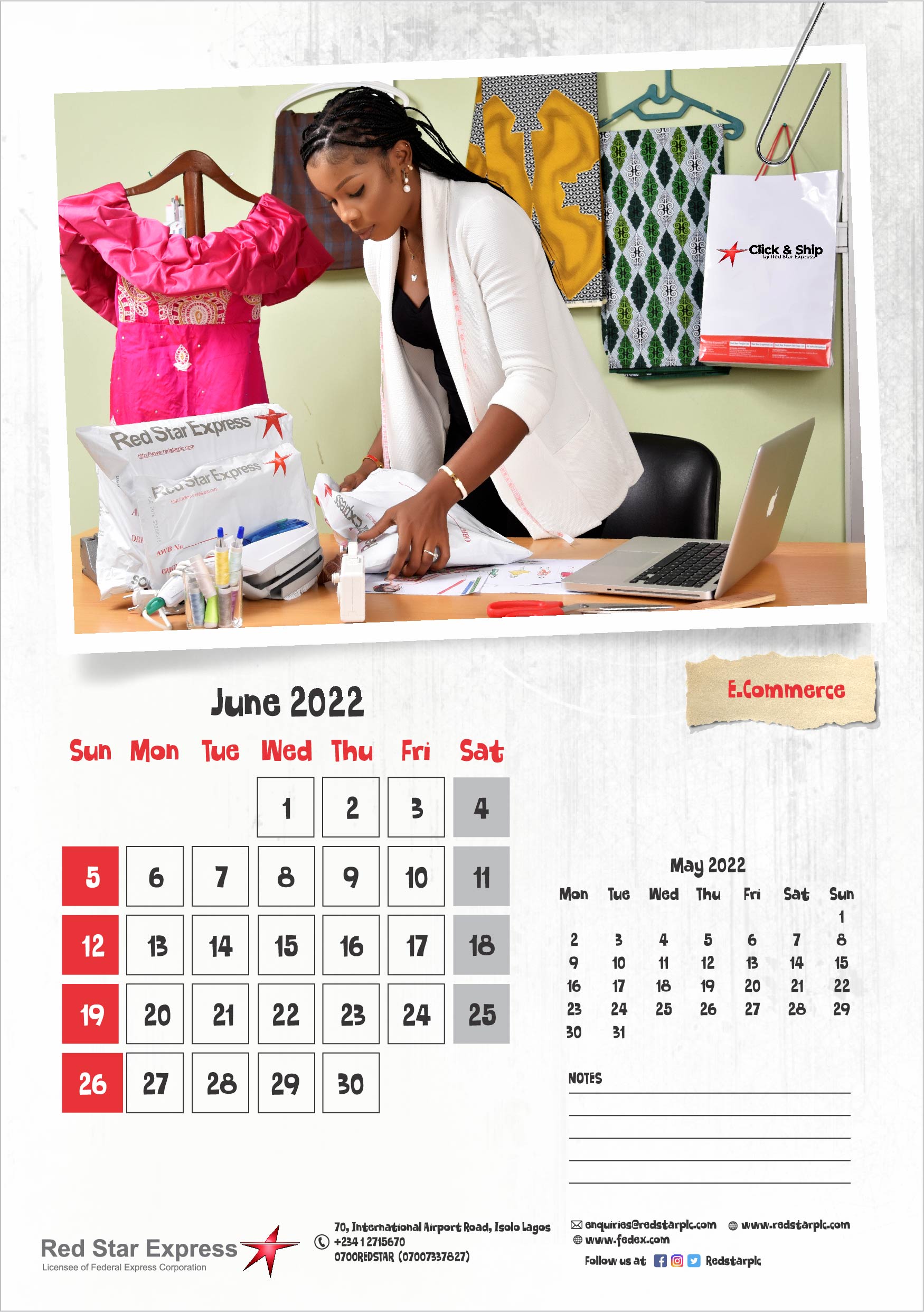 Red Star Express is a rapidly growing courier company in Nigeria, and they want a 12-month table calendar that highlights their courier services.